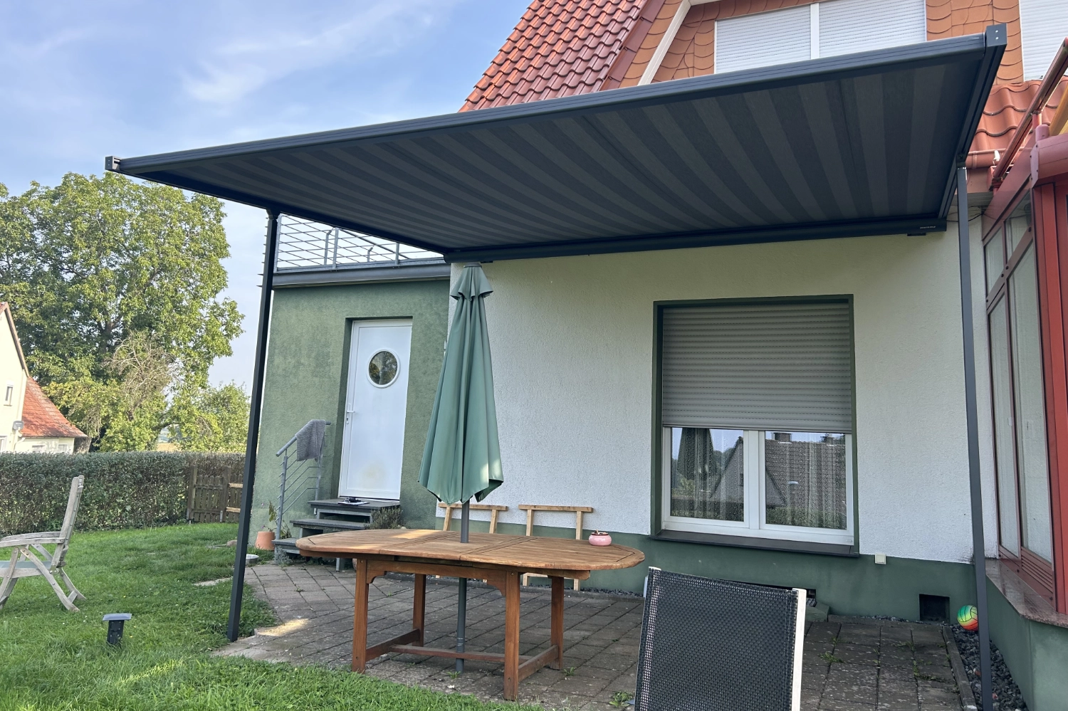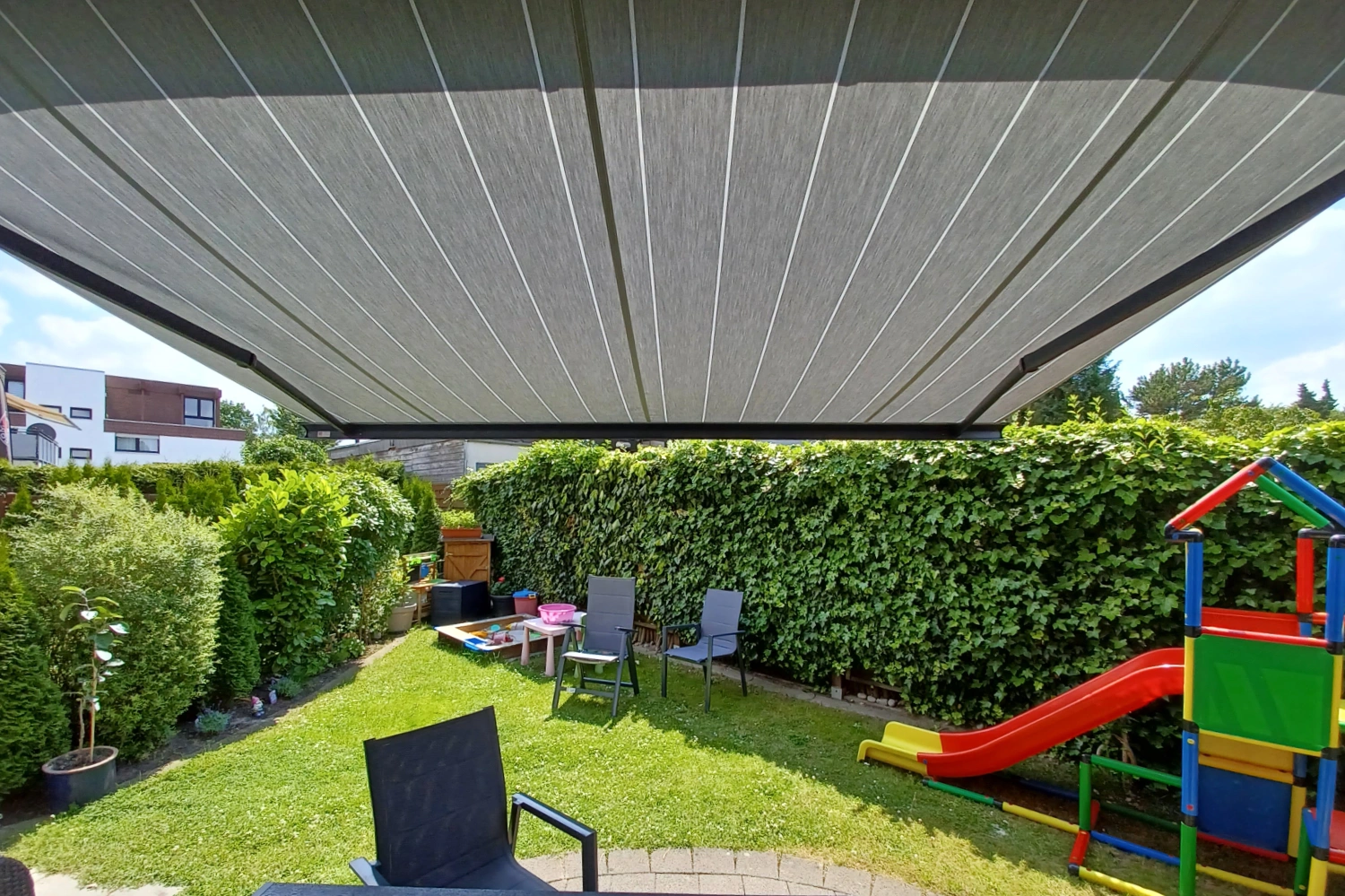 Die Warema Pergola-Markise vom Typ P40 wurde durch unsere Servicetechniker in Herford fachgerecht montiert. Ausgestattet mit moderner Funksteuerung ermöglicht die Anlage eine komfortable und einfache Bedienung. Die Installation erfolgte präzise, termingerecht und erfüllt höchste Ansprüche an Qualität und Funktionalität