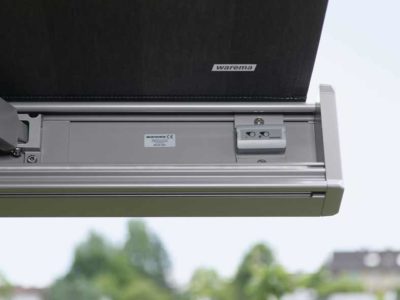 - Kaum sichtbar am Ausfallprofil der Markise montiert